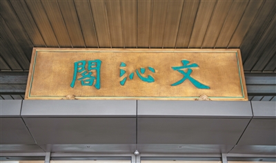 在广州国家版本馆主馆正门上方,悬挂着题有“文沁阁”馆名的匾额。据了解,“文沁阁”三字集自欧阳询被誉为“天下第一正书”的《九成宫醴泉铭》。